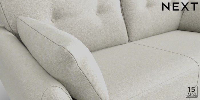 6.10.9 Buy Wilson Buttoned Back 3 Seater Small Sofa Plush Chenille Oyster Retro Tapered - Mid from the Next UK online shop Click here to use our accessible website
