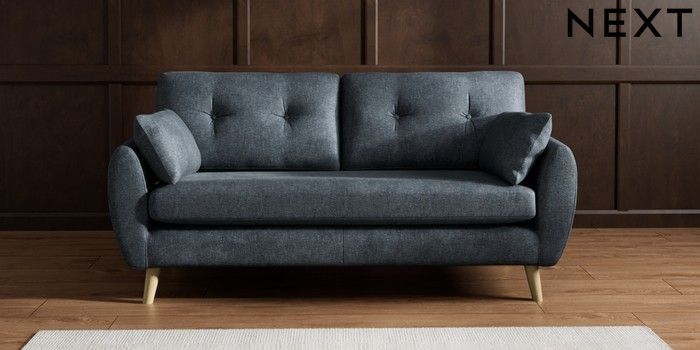7.2.10 Buy Wilson Buttoned Back 3 Seater Small Sofa Plush Chenille Slate Blue Retro Tapered - Light from the Next UK online shop Click here to use our accessible website