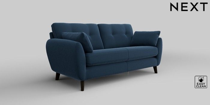 6.12.13 Buy Wilson Buttoned Back 3 Seater Small Sofa Plush Velvet Easy Clean Airforce Blue Retro Tapered - Dark from the Next UK online shop Click here to use our accessible website