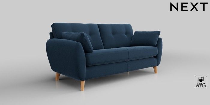 6.12.1 Buy Wilson Buttoned Back 3 Seater Small Sofa Plush Velvet Easy Clean Airforce Blue Retro Tapered - Light from the Next UK online shop Click here to use our accessible website
