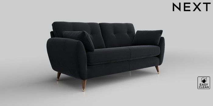 6.12.1 Buy Wilson Buttoned Back 3 Seater Small Sofa Plush Velvet Easy Clean Charcoal Grey Low Retro Tapered Metal Cap - Mid from the Next UK online shop Click here to use our accessible website