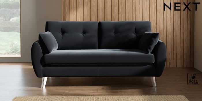 7.3.1 Buy Wilson Buttoned Back 3 Seater Small Sofa Plush Velvet Easy Clean Charcoal Grey Metal Tapered - Chrome from the Next UK online shop Click here to use our accessible website