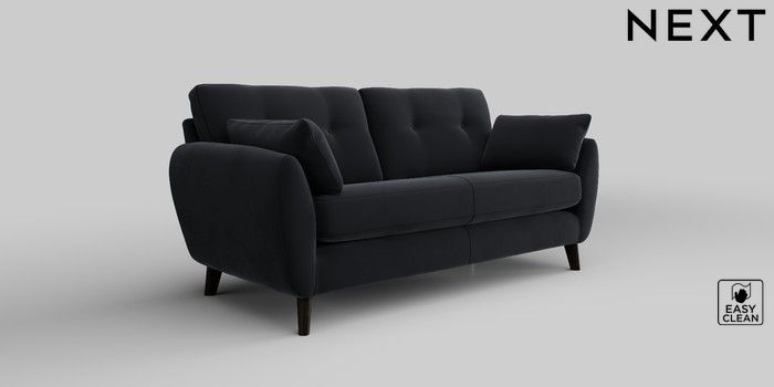 6.12.1 Buy Wilson Buttoned Back 3 Seater Small Sofa Plush Velvet Easy Clean Charcoal Grey Retro Tapered - Dark from the Next UK online shop Click here to use our accessible website