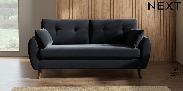 7.3.1 Buy Wilson Buttoned Back 3 Seater Small Sofa Plush Velvet Easy Clean Charcoal Grey Retro Tapered - Mid from the Next UK online shop Click here to use our accessible website