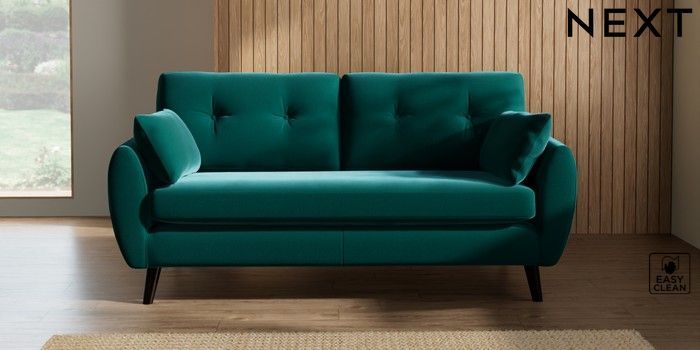 7.3.1 Buy Wilson Buttoned Back 3 Seater Small Sofa Plush Velvet Easy Clean Juniper Green Retro Tapered - Dark from the Next UK online shop Click here to use our accessible website