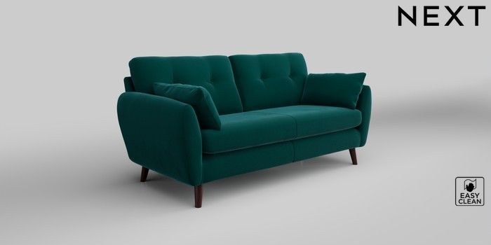 6.12.1 Buy Wilson Buttoned Back 3 Seater Small Sofa Plush Velvet Easy Clean Juniper Green Retro Tapered - Dark Brown from the Next UK online shop Click here to use our accessible website