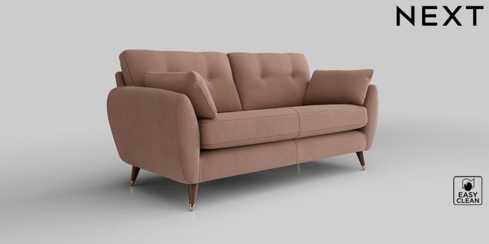 6.12.13 Buy Wilson Buttoned Back 3 Seater Small Sofa Plush Velvet Easy Clean Mid Natural Low Retro Tapered Metal Cap - Mid from the Next UK online shop Click here to use our accessible website