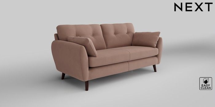 6.12.1 Buy Wilson Buttoned Back 3 Seater Small Sofa Plush Velvet Easy Clean Mid Natural Retro Tapered - Dark Brown from the Next UK online shop Click here to use our accessible website