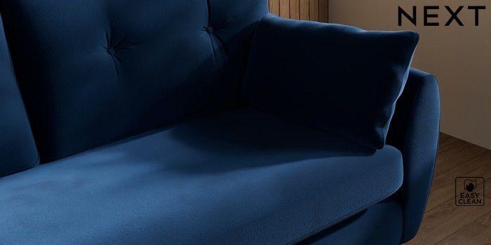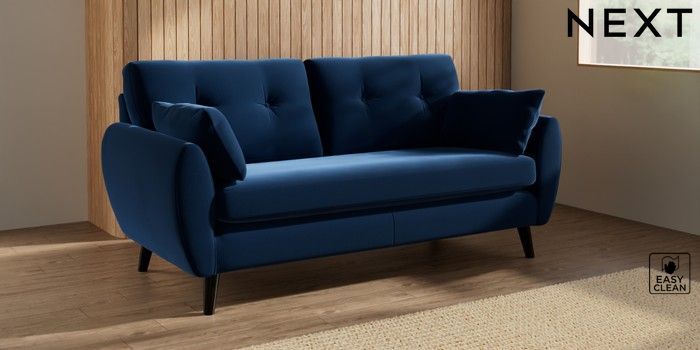 7.3.1 Buy Wilson Buttoned Back 3 Seater Small Sofa Plush Velvet Easy Clean Navy Blue Retro Tapered - Dark from the Next UK online shop Click here to use our accessible website