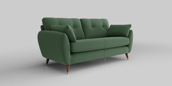 6.12.1 Buy Wilson Buttoned Back 3 Seater Small Sofa Relaxed Linen Look Dark Green Low Retro Tapered Metal Cap - Mid from the Next UK online shop Click here to use our accessible website