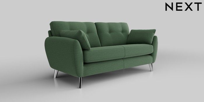 6.12.1 Buy Wilson Buttoned Back 3 Seater Small Sofa Relaxed Linen Look Dark Green Metal Tapered - Chrome from the Next UK online shop Click here to use our accessible website