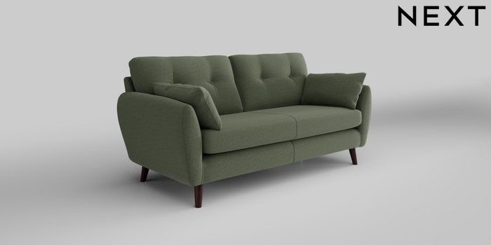 6.12.1 Buy Wilson Buttoned Back 3 Seater Small Sofa Relaxed Linen Look Dark Green Retro Tapered - Dark Brown from the Next UK online shop Click here to use our accessible website