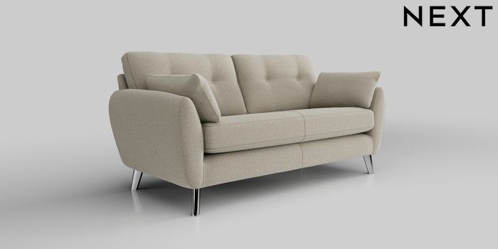 6.12.1 Buy Wilson Buttoned Back 3 Seater Small Sofa Ripple Chenille Light Natural Metal Tapered - Chrome from the Next UK online shop Click here to use our accessible website