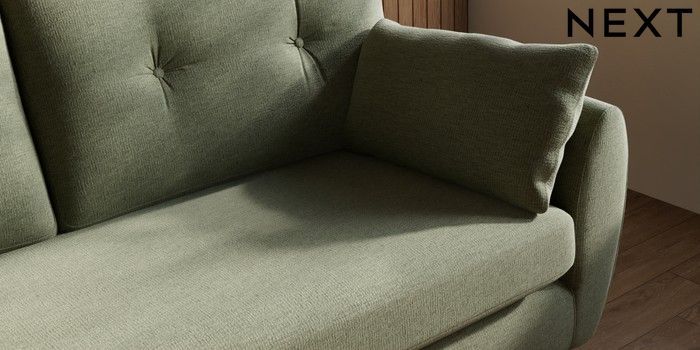 7.3.1 Buy Wilson Buttoned Back 3 Seater Small Sofa Ripple Chenille Mid Moss Green Metal Tapered - Gold from the Next UK online shop Click here to use our accessible website