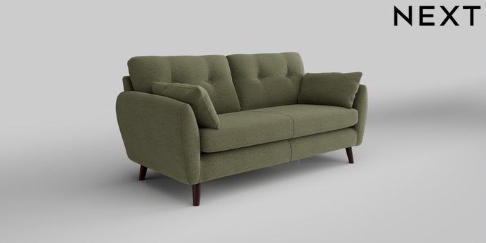 6.12.1 Buy Wilson Buttoned Back 3 Seater Small Sofa Ripple Chenille Mid Moss Green Retro Tapered - Dark Brown from the Next UK online shop Click here to use our accessible website