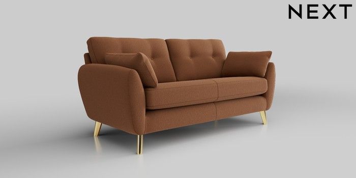 6.12.1 Buy Wilson Buttoned Back 3 Seater Small Sofa Ripple Chenille Mid Rust Brown Metal Tapered - Gold from the Next UK online shop Click here to use our accessible website