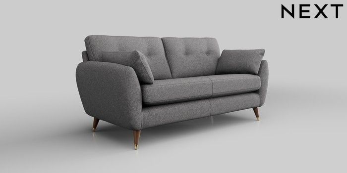 6.12.13 Buy Wilson Buttoned Back 3 Seater Small Sofa Studio Chenille Mid Grey Low Retro Tapered Metal Cap - Mid from the Next UK online shop Click here to use our accessible website