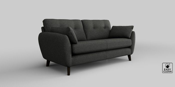 6.12.1 Buy Wilson Buttoned Back 3 Seater Small Sofa Tweedy Blend Easy Clean Charcoal Grey Retro Tapered - Dark from the Next UK online shop Click here to use our accessible website