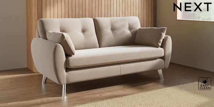 7.3.1 Buy Wilson Buttoned Back 3 Seater Small Sofa Tweedy Blend Easy Clean Light Dove Natural Metal Tapered - Chrome from the Next UK online shop Click here to use our accessible website
