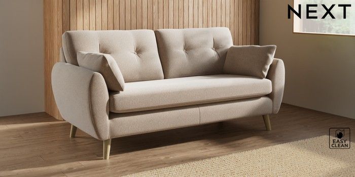 7.3.1 Buy Wilson Buttoned Back 3 Seater Small Sofa Tweedy Blend Easy Clean Light Dove Natural Retro Tapered - Light from the Next UK online shop Click here to use our accessible website