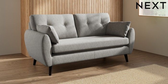 7.3.1 Buy Wilson Buttoned Back 3 Seater Small Sofa Tweedy Chenille Mid Grey Retro Tapered - Dark from the Next UK online shop