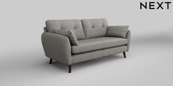 6.12.1 Buy Wilson Buttoned Back 3 Seater Small Sofa Tweedy Chenille Mid Grey Retro Tapered - Dark Brown from the Next UK online shop Click here to use our accessible website