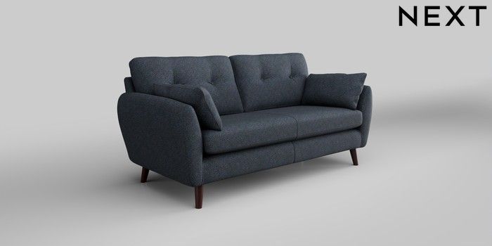 6.12.1 Buy Wilson Buttoned Back 3 Seater Small Sofa Tweedy Chenille Navy Blue Retro Tapered - Dark Brown from the Next UK online shop Click here to use our accessible website