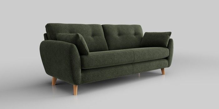 6.12.1 Buy Wilson Buttoned Back 3 Seater Sofa Boucle Chenille Dark Moss Green Retro Tapered - Light from the Next UK online shop Click here to use our accessible website