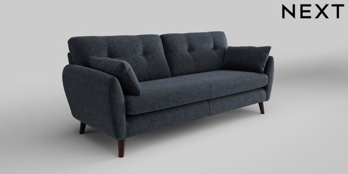 6.12.1 Buy Wilson Buttoned Back 3 Seater Sofa Boucle Chenille Dark Slate Blue Retro Tapered - Dark Brown from the Next UK online shop Click here to use our accessible website