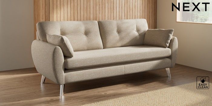 7.3.1 Buy Wilson Buttoned Back 3 Seater Sofa Boucle Weave Easy Clean Dark Natural Metal Tapered - Chrome from the Next UK online shop Click here to use our accessible website
