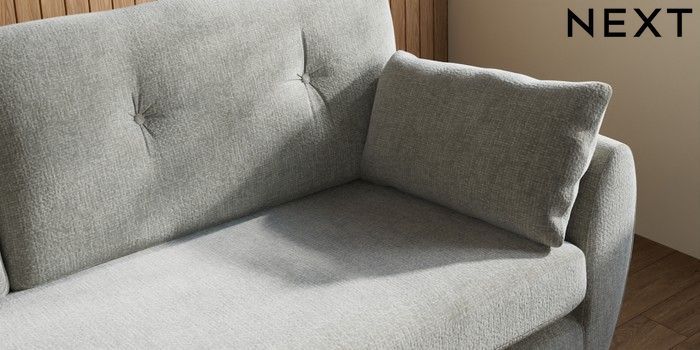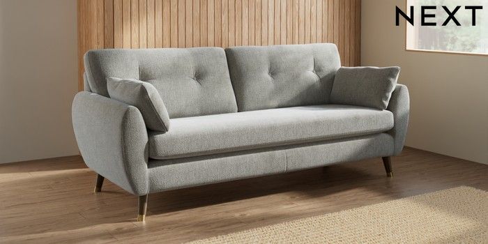 7.3.1 Buy Wilson Buttoned Back 3 Seater Sofa Chunky Chenille Light Grey Low Retro Tapered Metal Cap - Mid from the Next UK online shop Click here to use our accessible website