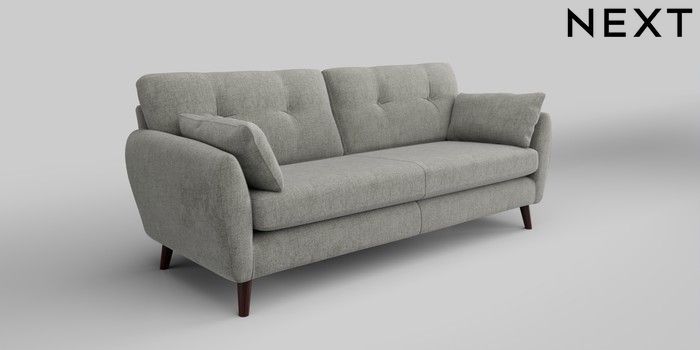 6.12.1 Buy Wilson Buttoned Back 3 Seater Sofa Chunky Chenille Light Grey Retro Tapered - Dark Brown from the Next UK online shop Click here to use our accessible website