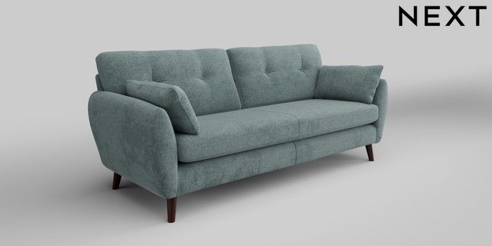 6.12.1 Buy Wilson Buttoned Back 3 Seater Sofa Chunky Chenille Light Teal Green Retro Tapered - Dark Brown from the Next UK online shop Click here to use our accessible website
