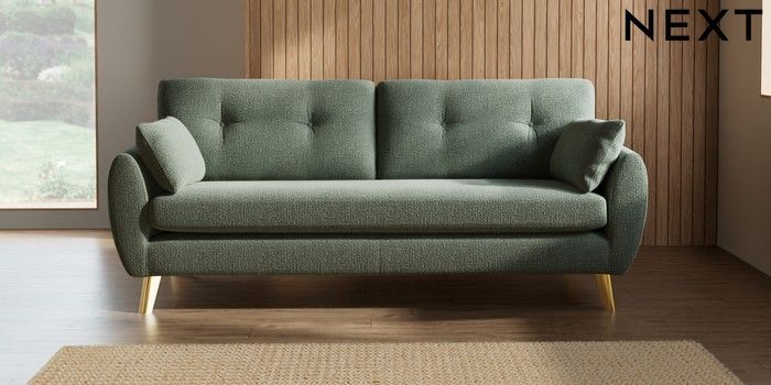 7.2.10 Buy Wilson Buttoned Back 3 Seater Sofa Chunky Texture Mid Forest Green Metal Tapered - Gold from the Next UK online shop Click here to use our accessible website