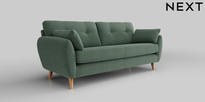 6.12.1 Buy Wilson Buttoned Back 3 Seater Sofa Chunky Texture Mid Forest Green Retro Tapered - Light from the Next UK online shop Click here to use our accessible website