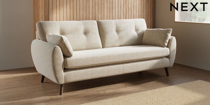 7.3.1 Buy Wilson Buttoned Back 3 Seater Sofa Chunky Weave Cream Retro Tapered - Mid from the Next UK online shop