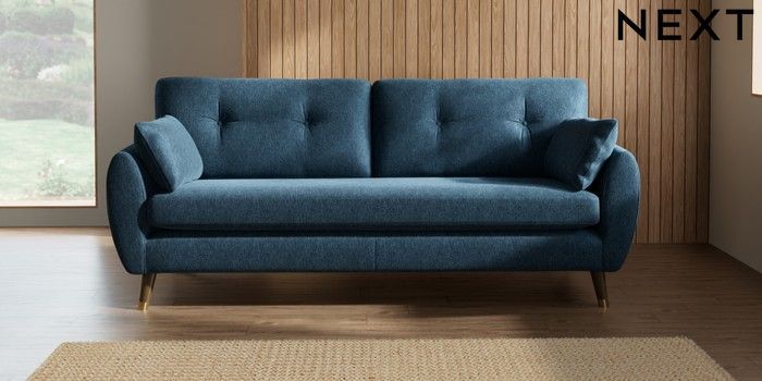 7.3.1 Buy Wilson Buttoned Back 3 Seater Sofa Cotswold Chenille Dark Blue Low Retro Tapered Metal Cap - Mid from the Next UK online shop Click here to use our accessible website