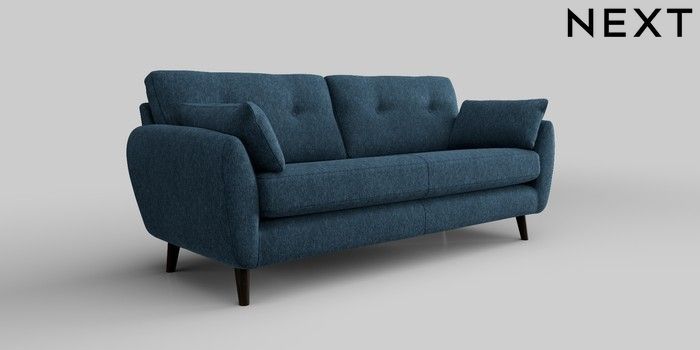 6.12.1 Buy Wilson Buttoned Back 3 Seater Sofa Cotswold Chenille Dark Blue Retro Tapered - Dark from the Next UK online shop Click here to use our accessible website