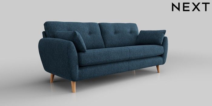 6.12.1 Buy Wilson Buttoned Back 3 Seater Sofa Cotswold Chenille Dark Blue Retro Tapered - Light from the Next UK online shop Click here to use our accessible website