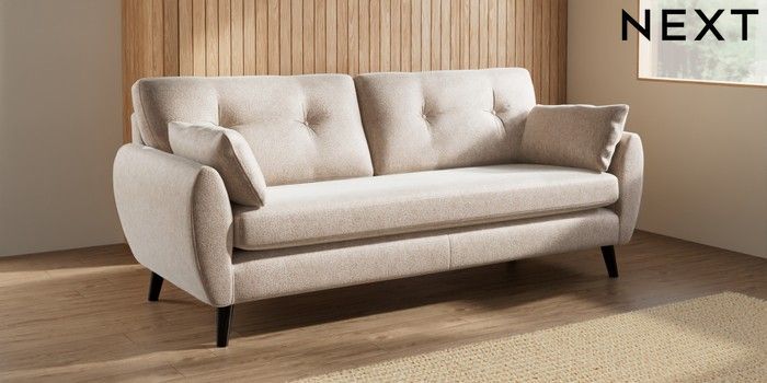 7.3.1 Buy Wilson Buttoned Back 3 Seater Sofa Cotswold Chenille Light Natural Retro Tapered - Dark from the Next UK online shop