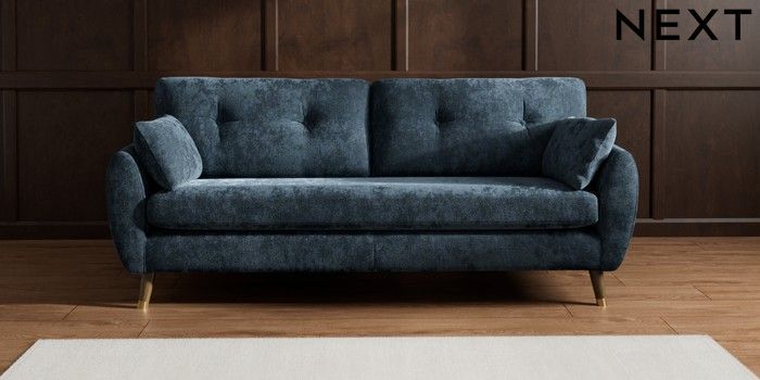 7.3.1 Buy Wilson Buttoned Back 3 Seater Sofa Distressed Velour Midnight Blue Low Retro Tapered Metal Cap - Mid from the Next UK online shop Click here to use our accessible website
