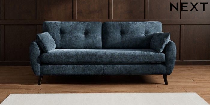 7.2.10 Buy Wilson Buttoned Back 3 Seater Sofa Distressed Velour Midnight Blue Retro Tapered - Dark from the Next UK online shop Click here to use our accessible website