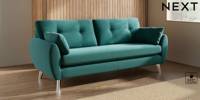 7.3.1 Buy Wilson Buttoned Back 3 Seater Sofa Fine Chenille Easy Clean Dark Juniper Green Metal Tapered - Chrome from the Next UK online shop Click here to use our accessible website