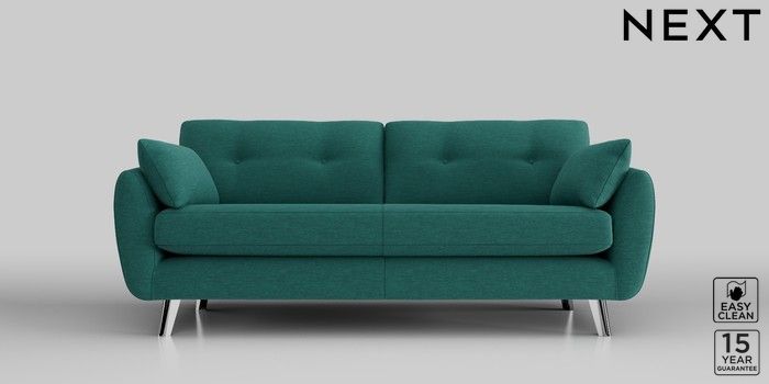 6.11.4 Buy Wilson Buttoned Back 3 Seater Sofa Fine Chenille Easy Clean Dark Juniper Green Metal Tapered - Chrome from the Next UK online shop Click here to use our accessible website