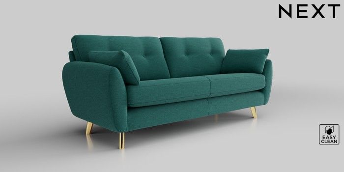 6.12.1 Buy Wilson Buttoned Back 3 Seater Sofa Fine Chenille Easy Clean Dark Juniper Green Metal Tapered - Gold from the Next UK online shop Click here to use our accessible website