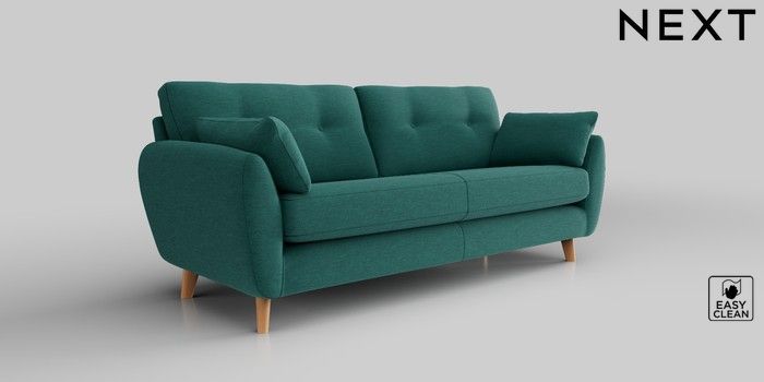 6.12.1 Buy Wilson Buttoned Back 3 Seater Sofa Fine Chenille Easy Clean Dark Juniper Green Retro Tapered - Light from the Next UK online shop Click here to use our accessible website