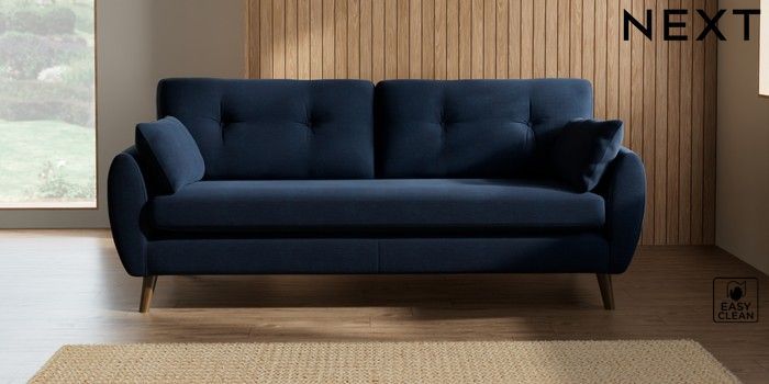 7.3.1 Buy Wilson Buttoned Back 3 Seater Sofa Fine Chenille Easy Clean Dark Navy Blue Retro Tapered - Mid from the Next UK online shop Click here to use our accessible website