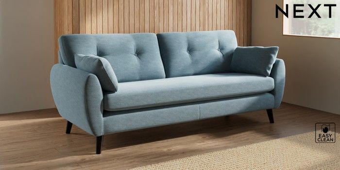 7.3.1 Buy Wilson Buttoned Back 3 Seater Sofa Fine Chenille Easy Clean Mid Blue Retro Tapered - Dark from the Next UK online shop