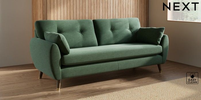 7.3.1 Buy Wilson Buttoned Back 3 Seater Sofa Fine Chenille Easy Clean Mid Khaki Green Low Retro Tapered Metal Cap - Mid from the Next UK online shop Click here to use our accessible website