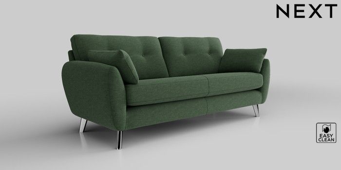 6.12.13 Buy Wilson Buttoned Back 3 Seater Sofa Fine Chenille Easy Clean Mid Khaki Green Metal Tapered - Chrome from the Next UK online shop Click here to use our accessible website